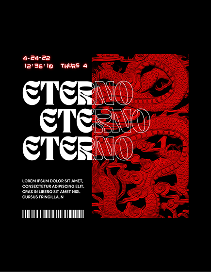 Eterno is a men’s yearclub with main colours black and red. For their t-shirt I made a design of a red fierceful dragon to propagate masculinity.